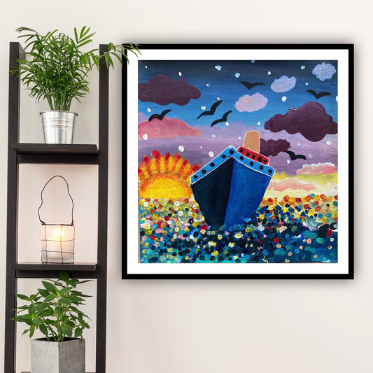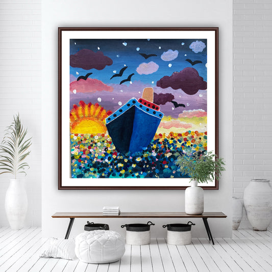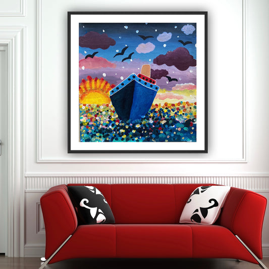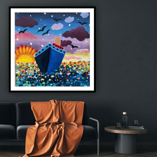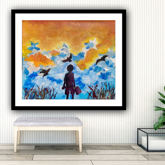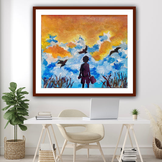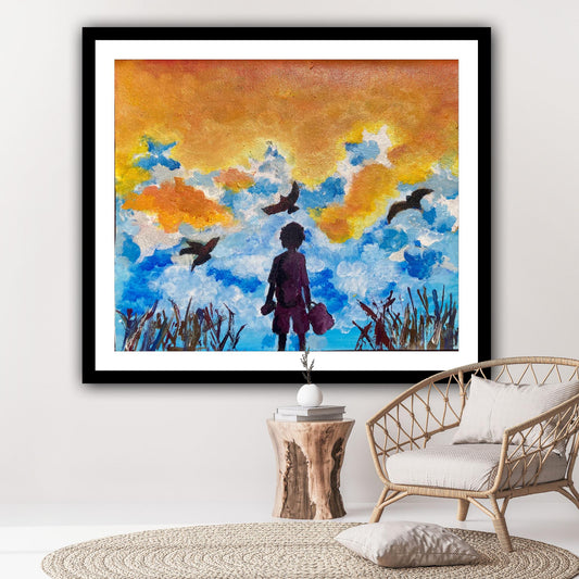 Each work of art is individually fingerprint-signed by Advaith Bibhuti and comes with a Certificate of Authenticity. For future value, we recommend enclosing the certificate in an envelope and placing it behind the framed artwork. All paintings are shipped as rolled canvases in a sturdy tube; frames are not included. Copyright© Advaith Bibhuti & legal guardians. All rights to the artworks are held exclusively by Advaith Bibhuti and his legal guardians. These rights remain with the artist and his legal guardians even after purchase by a collector. The collector is strictly prohibited from reproducing or distributing any artwork in any form or medium